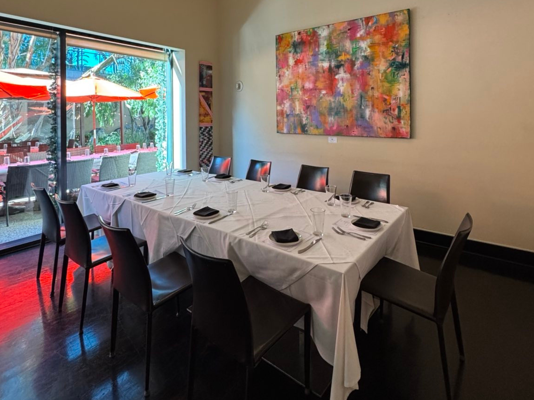 A sleek glass-enclosed space perfect for private dinners, meetings, or intimate celebrations. Surrounded by natural light and contemporary art, it offers a refined, exclusive atmosphere.